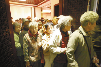 听讲座者排队领礼品